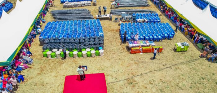 The items included 6,500 water pipes and 1,100 fittings for last mile distribution of water to homesteads, 6,270 chairs and 63 tents were handed over to self-help groups, alongside 1,000 blankets, catering items, car wash machines, and public address systems.